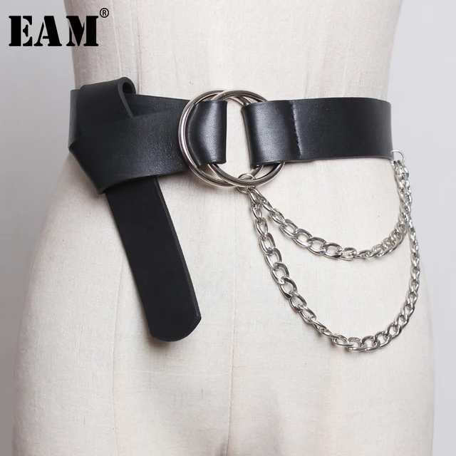 Special Offer [EAM] 2020 New Spring Summer Pu Leather Chain Split Joint Metal Buckle Personality Long Belt Women with Free Shipping Worldwide!