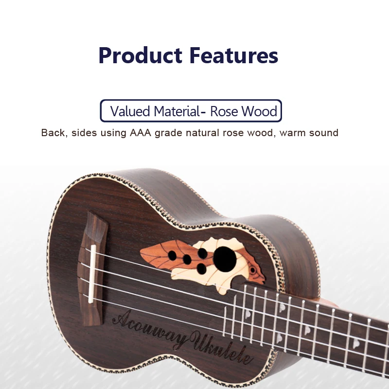 OVERVIEW Product Acouway Ukulele Soprano Concert Ukulele 21 23 rosewood uku Ukelele with Aquila String mini Hawaii g
